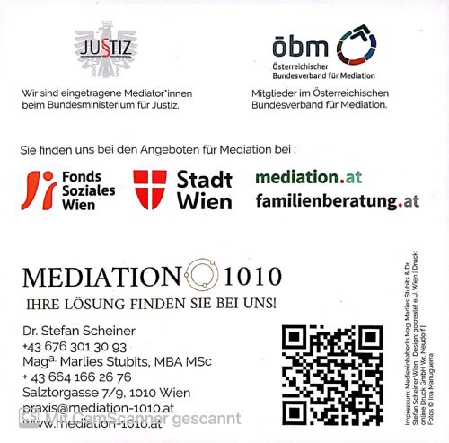 Mit persönlicher und professioneller Begleitung! Ihre Bedürfnisse stehen bei uns im Mittelpunkt! Konflikte, Missverständnisse, Zerwürfnisse, Streit... weg damit! Wir begleiten Sie auf dem Weg zu Einigkeit, Lösungen und verständnisvollem Zusammenleben! Ihr erster Schritt: Mediation 1010